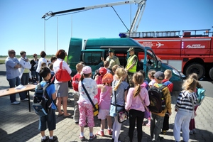 Dla dzieci bardzo atrakcyjnymi były również start i lądowanie kilku samolotów pasażerskich z pasa startowego. Dzięki współpracy z Lotniskową Strażą Pożarną prezentowany był najnowocześniejszy sprzęt Strażaków. Na pamiątkę spotkania z funkcjonariuszami Straży Granicznej każdy uczeń otrzymał upominek tj. „osobisty odcisk palca” oraz kolorowanki Straży Granicznej.