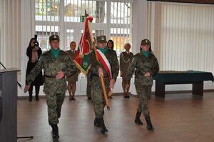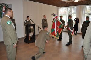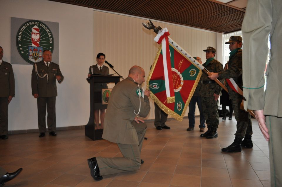 Hołodniuk. Podczas apelu miało miejsce również uroczyste pożegnanie ze sztandarem NoOSG delegacji funkcjonariuszy odchodzących na emeryturę, wśród których byli Komendanci Placówek Straży Granicznej w Świecku i w Kostrzynie n. Odrą.