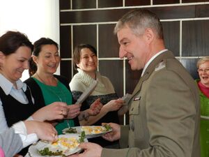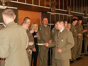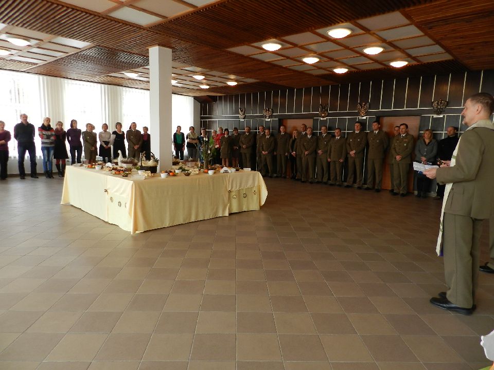 27 marca br. w Komendzie Nadodrzańskiego Oddziału Straży Granicznej odbyło się uroczyste spotkanie z okazji zbliżających się Świąt Wielkanocnych celebrowane przez o. ppłk. Edwarda Olecha. W spotkaniu wzięli udział chętni do podzielenia się symbolicznym wielkanocnym jajkiem funkcjonariusze i pracownicy Komendy. Nie zabrakło życzeń płk SG Andrzeja Kamińskiego - p.o. Komendanta Nadodrzańskiego Oddziału Straży Granicznej, który wraz z zastępcą ppłk SG Tomaszem Michalskim był obecny na uroczystości.