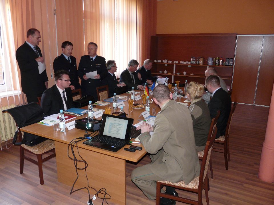26 kwietnia br. w Komendzie Nadodrzańskiego Oddziału Straży Granicznej odbyła się polsko - niemiecka narada robocza Komendantów Nadodrzańskiego i Morskiego Oddziału Straży Granicznej oraz Prezydentów Dyrekcji Policji Federalnej z Berlina, Pirny i Bad Bramstedt. Na spotkaniu obecni byli kontradm. SG Piotr Stocki - Komendant MOSG, płk SG Andrzej Kamiński - p.o. Komendanta NoOSG wraz z zastępcą ppłk SG Tomaszem Michalskim, Thomas Striethoerster - Prezydent Dyrekcji BPol w Berlinie wraz z zastępcą Panem Peterem Michaelem Kessow, Detlef Fritsch - Prezydent Dyrekcji BPol w Pirnie, Joachim Franklin - Prezydent Dyrekcji BPol w Bad Bramstedt oraz współpracownicy Dyrektorów z poszczególnych Dyrekcji.