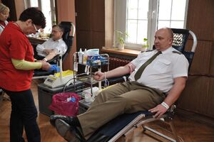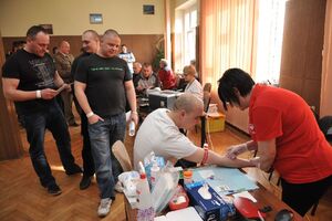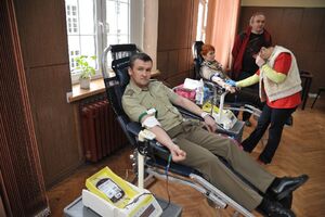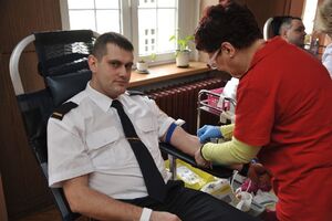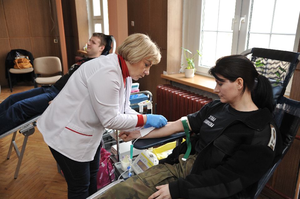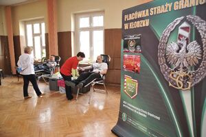 Wczoraj funkcjonariusze Placówki SG w Kłodzku oraz ich koledzy z innych służb mundurowych honorowo oddawali krew. W mobilne centrum krwiodawstwa zamienione zostało pomieszczenie placówki. Obsługę przy pobieraniu krwi zapewnił personel medyczny Regionalnego Centrum Krwiodawstwa i Krwiolecznictwa z Wałbrzycha. Łącznie zgłosiło się 43 osoby, z których 27 oddało ponad 12 litrów tego cennego leku jakim jest krew. Ten dar serca posłuży przy ratowaniu życia i zdrowia potrzebujących z powiatu kłodzkiego. Funkcjonariusze, jak i ich koledzy z innych służb mundurowych rozumieją potrzebę oddawania krwi.