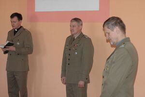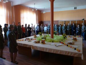 Ksiądz kapelan por. SG Marcin Czuchraniuk odczytał fragment Ewangelii i poświęcił ustawiony na stole pokarm. Obecny na spotkaniu kapelan garnizonowy Krosna Odrzańskiego, ojciec ppłk Edward Olech, złożył obecnym życzenia i zaprosił do uczestnictwa w nabożeństwach Triduum Paschalnego.
