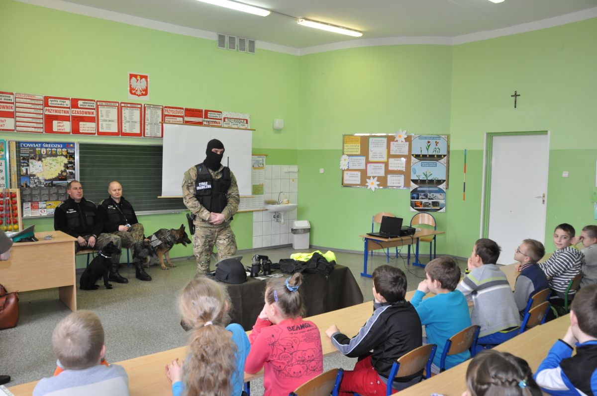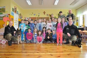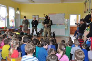 Przewodnik psa służbowego wygłaszał prelekcje dotyczące bezpiecznych zachowań, przede wszystkim dotyczących kontaktów z obcymi psami. Demonstrowana była również „pozycja bezpieczna”, którą należy przyjąć w przypadku ataku psa. Ciekawym elementem odwiedzin był pokaz psa służbowego z wyszkolenia specjalistycznego i ogólnego posłuszeństwa.