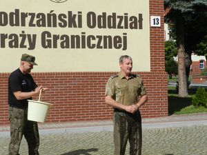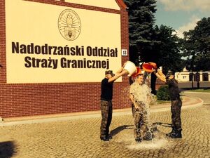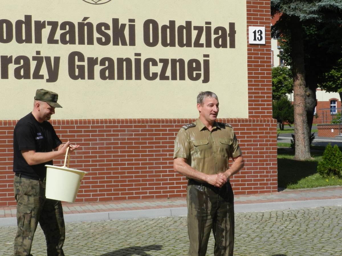 Akcja „SPLASH” dotarła do Nadodrzańskiego Oddziału SG. Dzisiaj Komendant NoOSG płk SG Andrzej Kamiński odpowiedział na wyzwanie i godnie przyjął kubeł – a właściwie trzy kubły – zimnej wody.