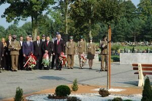 Płk SG Tomasz Michalski wraz z delegacją Nadodrzańskiego Oddziału SG złożył pod pomnikiem Sybiraków okolicznościową wiązankę kwiatów.