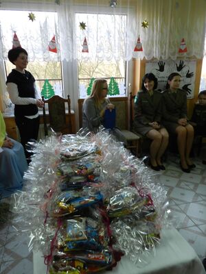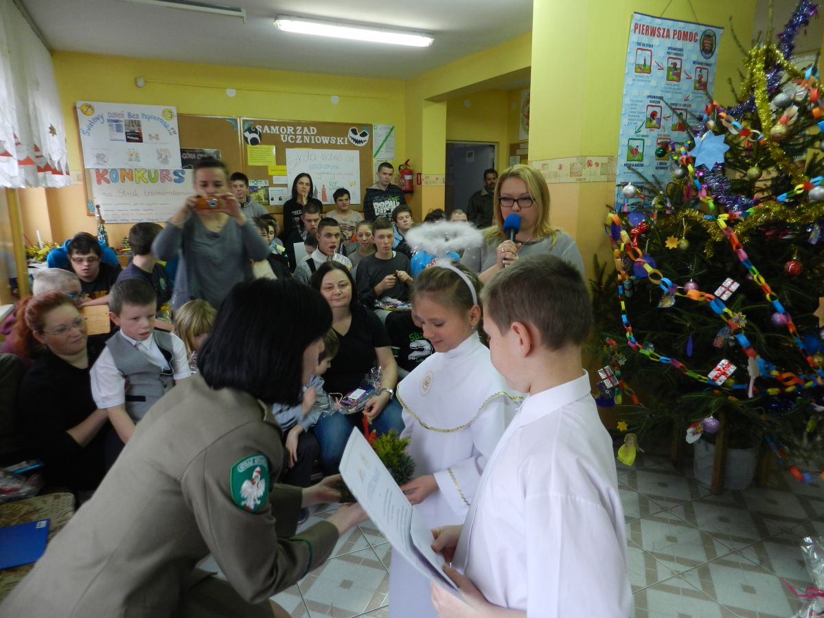 Upominki, chociaż skromne, ucieszyły dzieci. Dyrekcja, nauczyciele oraz prezes działającego przy szkole Stowarzyszenia „Wzgórze nadziei”, gorąco podziękowali wszystkim funkcjonariuszom i pracownikom NoOSG za inicjatywę i udział w akcji. W podziękowaniu uczniowie przekazali Komendantowi Oddziału własnoręcznie wykonane stroiki bożonarodzeniowe.