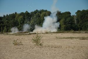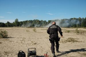 47 minerów – pirotechników z Nadodrzańskiego Oddziału Straży Granicznej doskonaliło techniki neutralizacji urządzeń wybuchowych. Szkolenie odbyło się w dniach 15-18 września 2015 r. na poligonie w Morsku niedaleko Krosna Odrzańskiego.